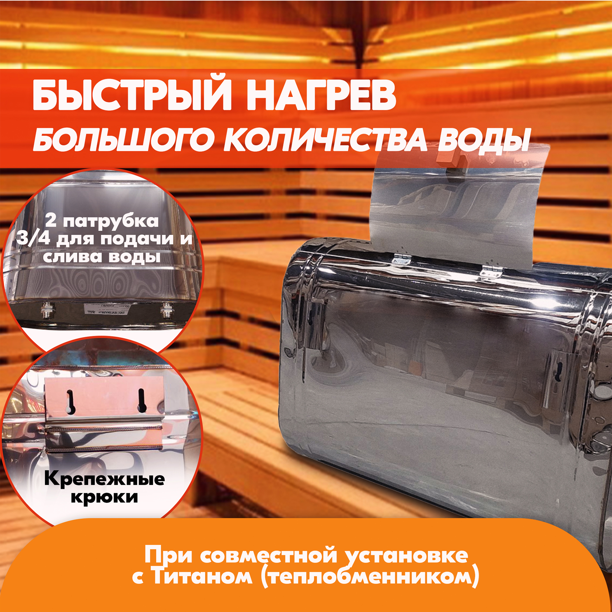 При установке совместно с титаном нагрев воды в навесном баке обеспечивается за счет передачи тепла через теплообменник.