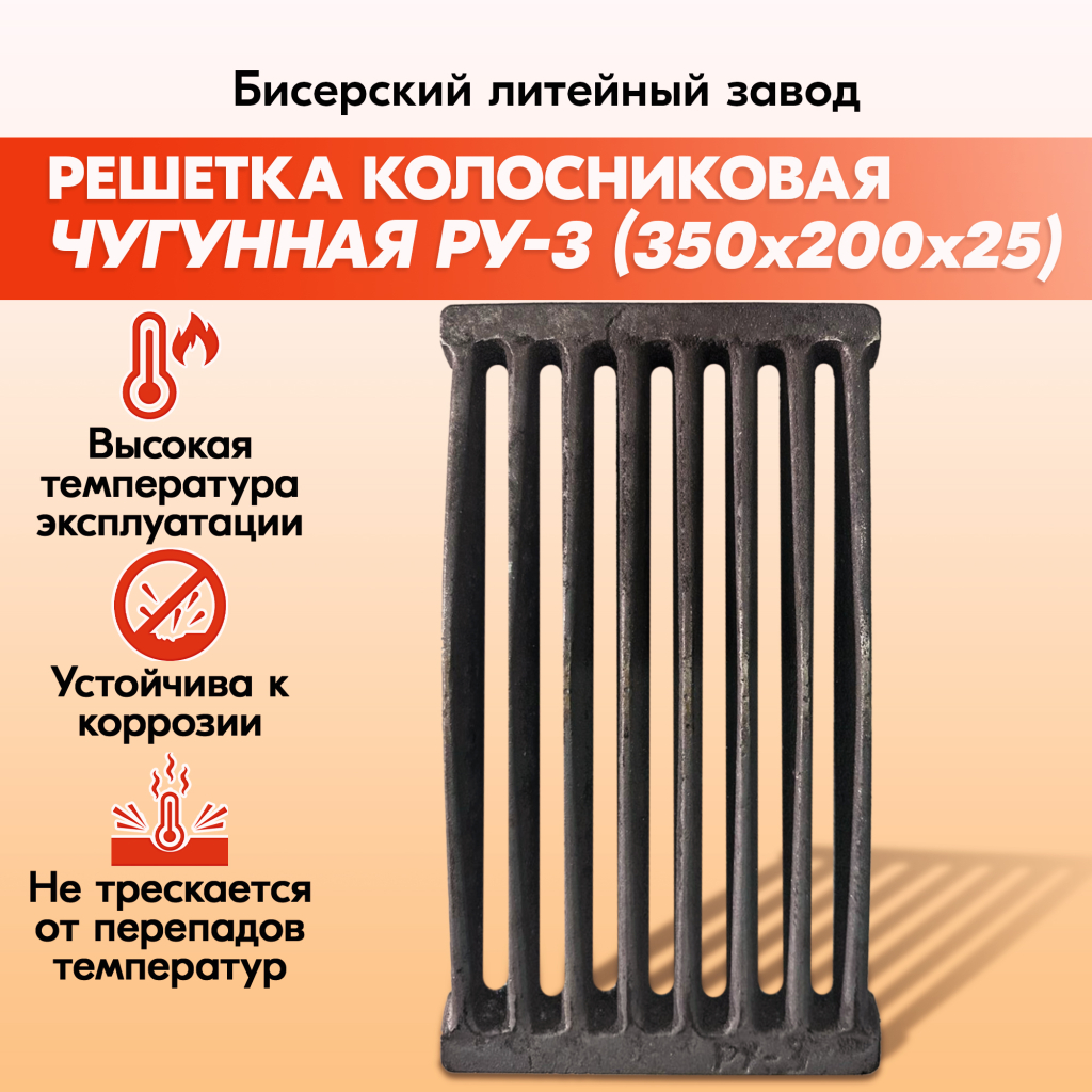 Решетка колосниковая РУ-3 (350х200) чугунная для печи и котла, правильные колосники для печки и котлов